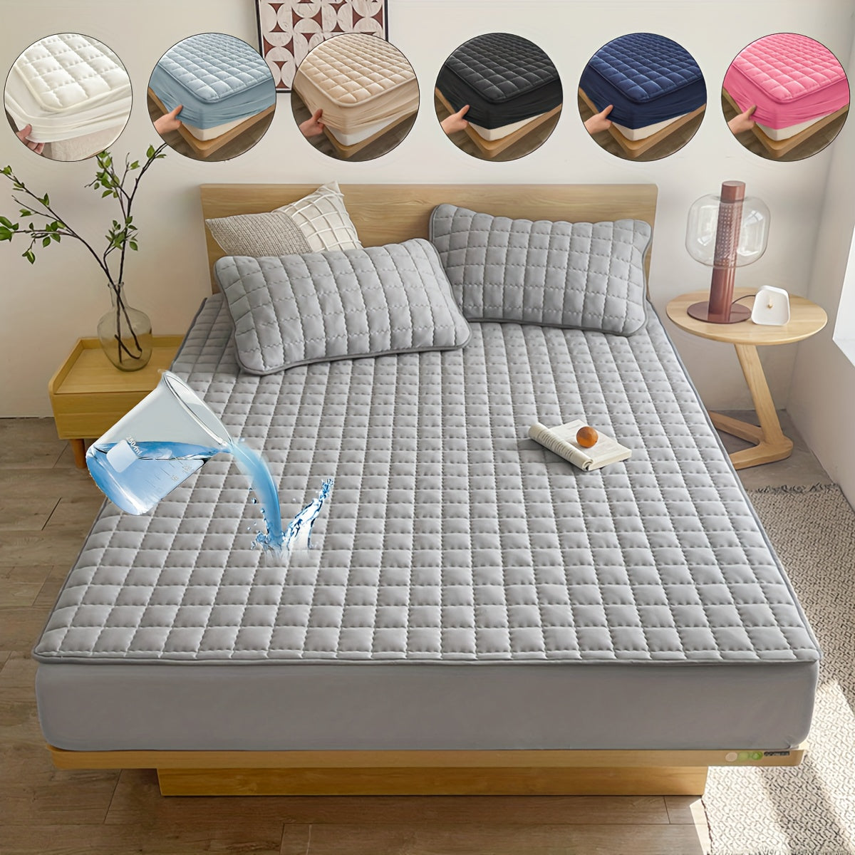 1pc Protège-matelas Imperméable Matelassé (sans Oreiller Ni Noyau), Housse De Matelas Confortable Et Douce De Couleur Unie, Pour Chambre À Coucher, Chambre D'amis, Avec Poche Profonde, Drap-housse Ajusté Uniquement