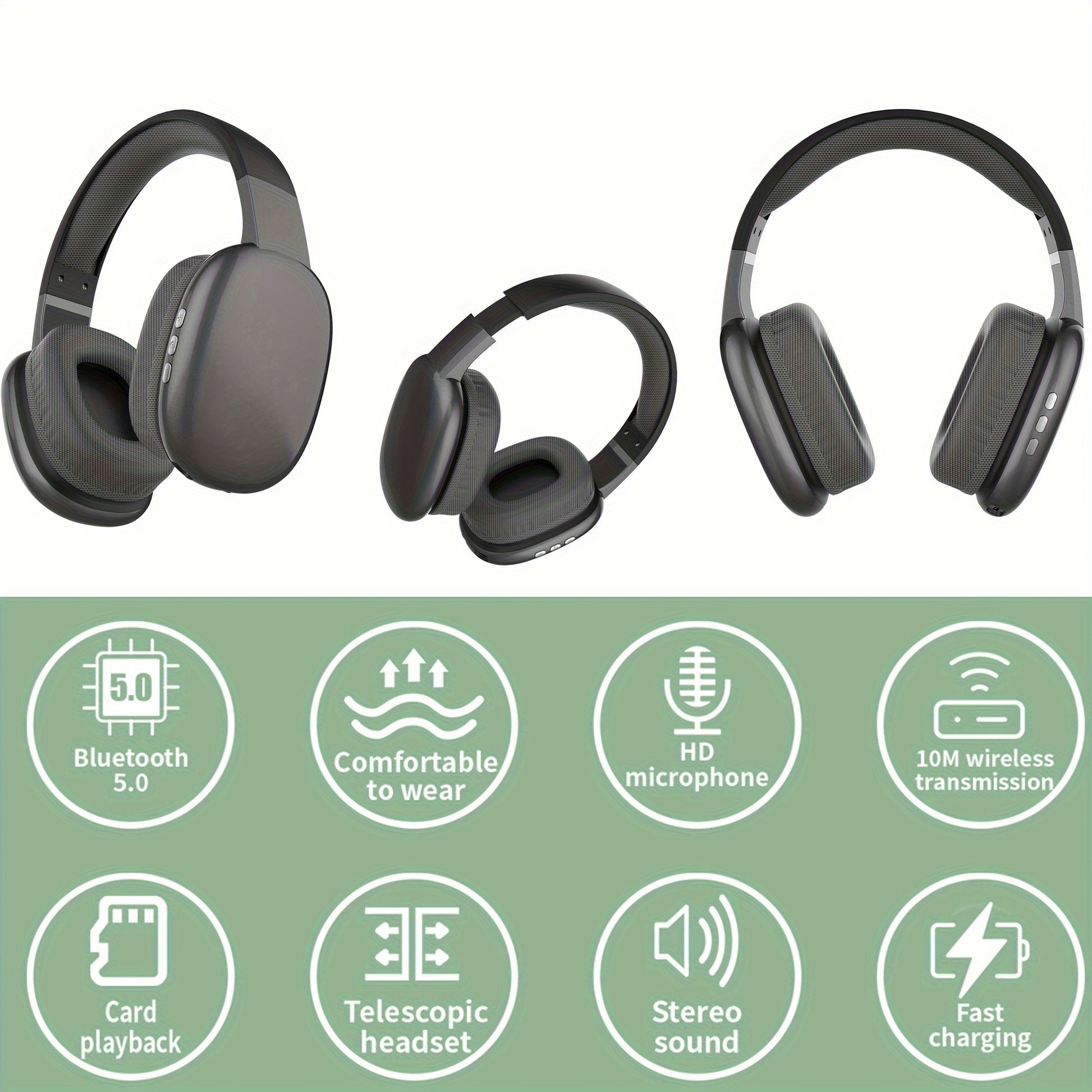 Wireless Over-Ear-Headphones, Casque Stéréo Avec Microphone, Basses Puissantes, Port De Charge USB-C, FM, SD/TF, Écouteurs De Sport, Casque De Jeu
